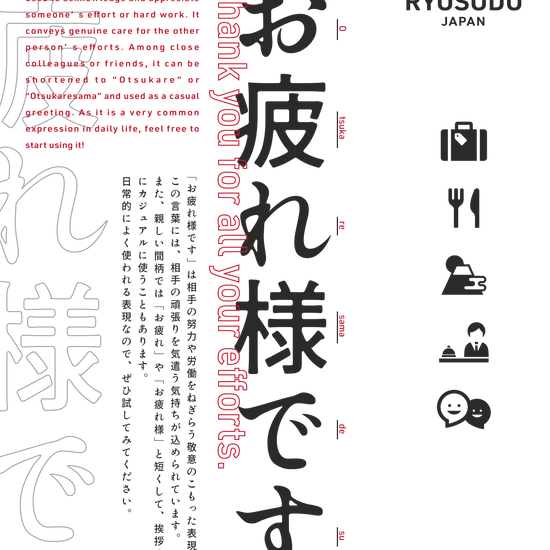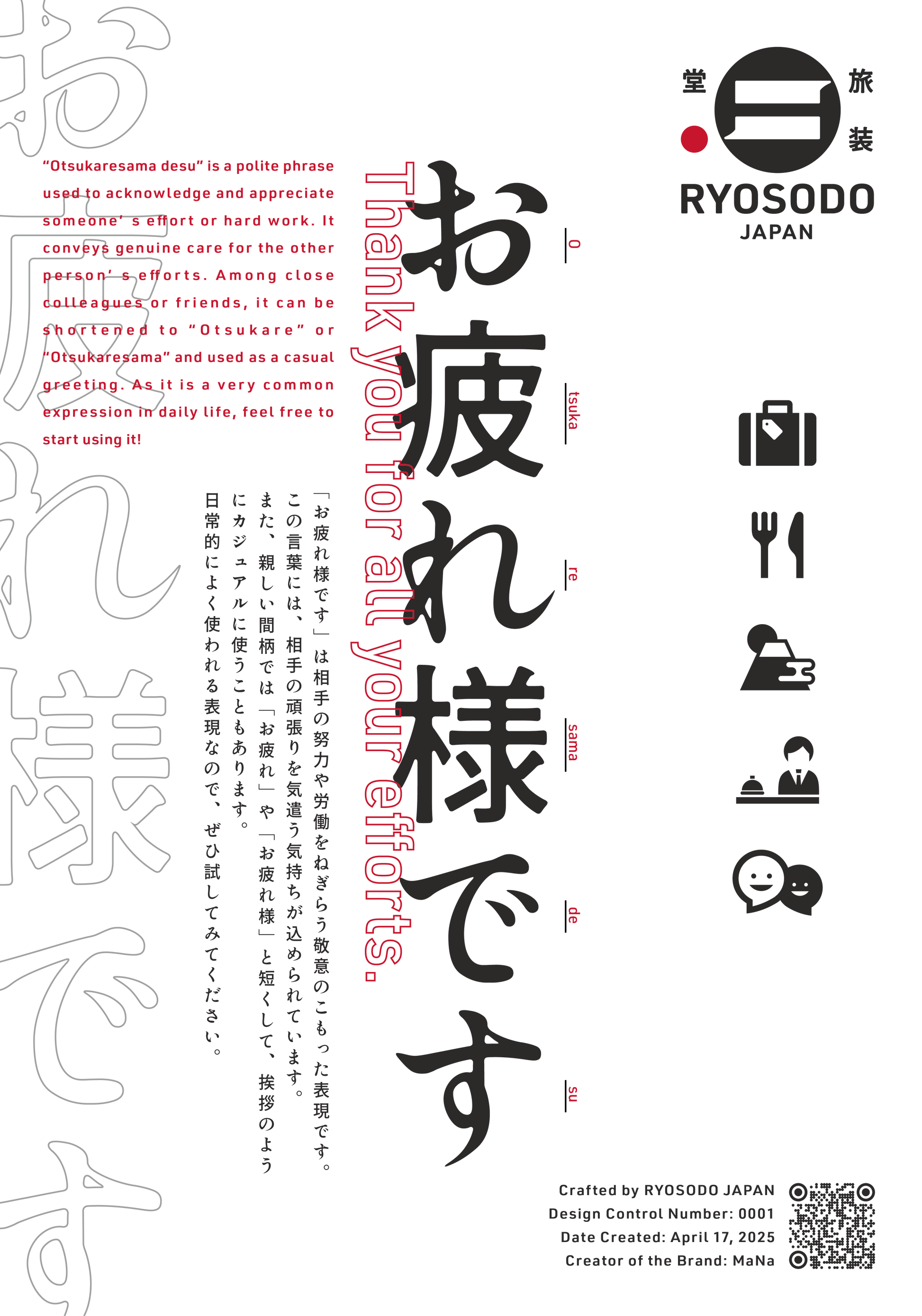 Wearing this shirt can be a great conversation starter, whether you're meeting up with your Japanese-speaking buddies or traveling in Japan and interacting with locals. It's a fun and unique way to show your interest in Japanese culture and connect with people. Saying or even just wearing "Otsukaresama desu" shows your respect and appreciation. It's a very common and uniquely Japanese expression, so just wearing it might make people you meet in Japan feel more open and friendly.